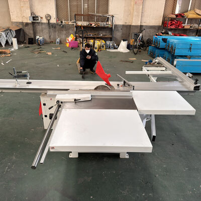 Equipped with a 5.5 KW main motor and a 0.75 KW scoring motor—both mounted above the frame—this saw delivers reliable power for clean, tear-free cuts on laminated panels and solid wood.