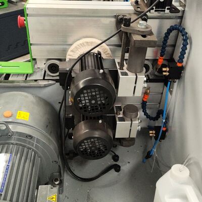 End Cutting: Pneumatically actuated blades trim excess edge band from panel ends with clean, square cuts.