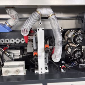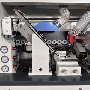 The BHM300 Automatic Edge Banding Machine is an economical and efficient edge banding device designed specifically for panel stores and small processing workshops. Featuring a compact structure with dimensions of 3000×750×1500mm and a machine weight of 800kg, it can be customized according to customer requirements. Equipped with a vertical display control panel and a hand-crank digital display adjustment device, it enables precise adjustment of the pressure beam height. The large-capacity glue roller design supports continuous glue application and long-term stable operation. The machine supports board thicknesses ranging from 10mm to 60mm and edge banding materials with thicknesses of 0.3mm to 3mm, with a minimum workpiece size of 50mm (width) × 70mm (length). Operating at a conveyor speed of 16m/min, a total power of 7kW, and a working pressure of 0.7MPa, it is suitable for processing various edge banding materials such as PVC and polyester.
