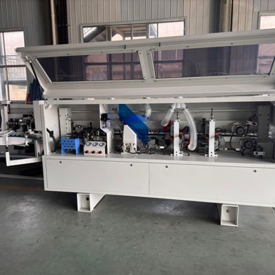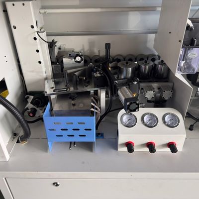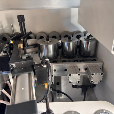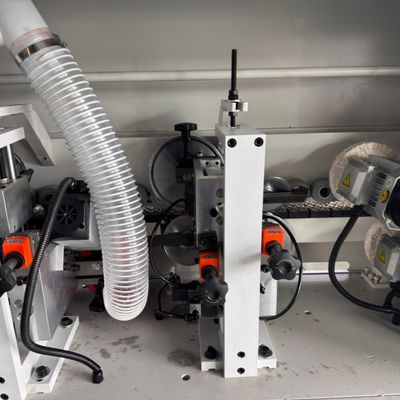 For shaping the top and bottom edges of the banding material, this station utilizes a high-speed, angle-adjustable trimming motor. The precision alloy trimming discs guarantee a smooth, even, and burr-free finish, perfectly flush with the panel surface.