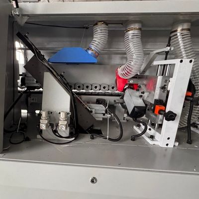 With a conveyor speed of 16m/min and a total power of 7kW, it efficiently processes panels ranging from 10mm to 60mm in thickness and accepts edge banding materials from 0.3mm to 3mm. The machine handles minimum board sizes of 50mm (width) and 70mm (length), making it versatile for both small components and standard panels.